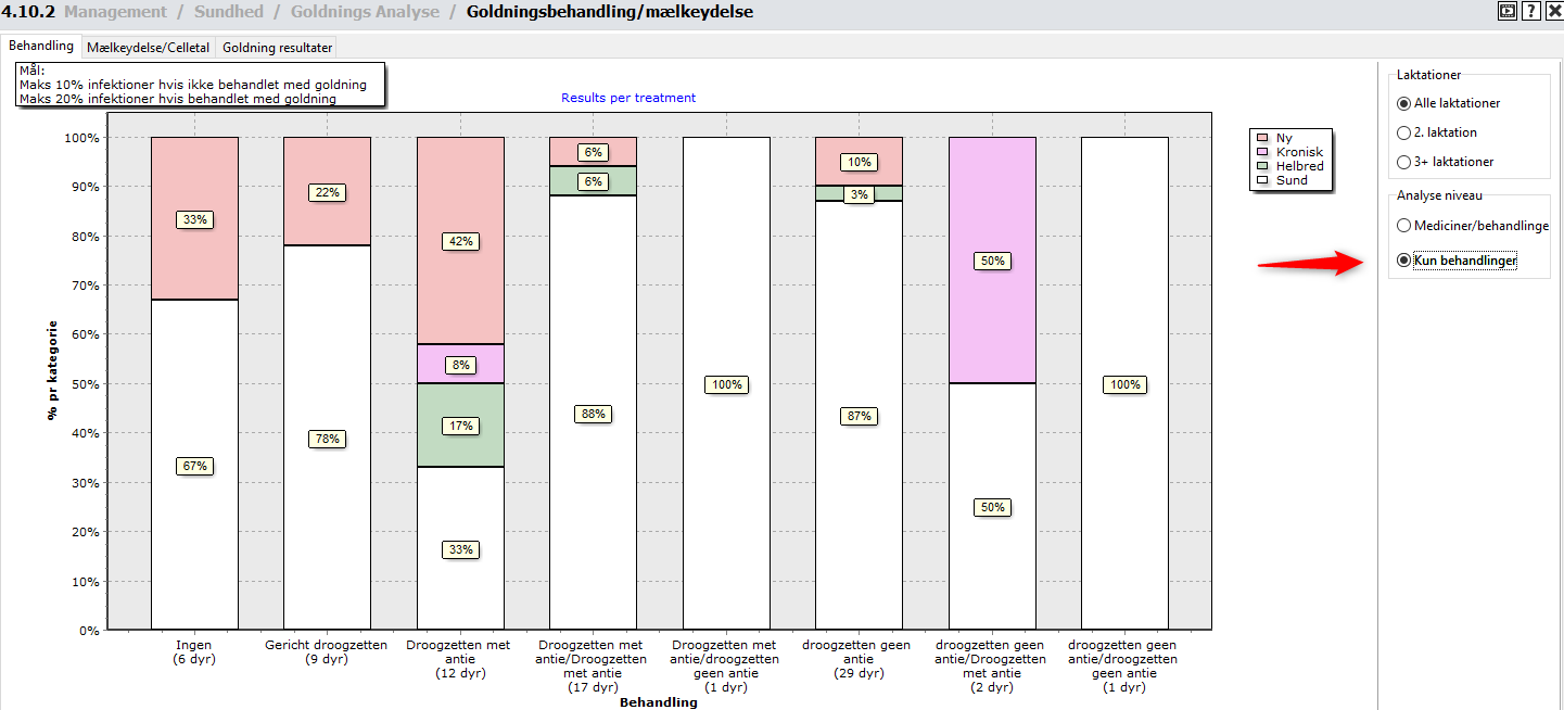 Du finder denne del på: Management-> Sundhed -> Goldningsanalyse -> Goldningsbehandling/mælkeydelse.