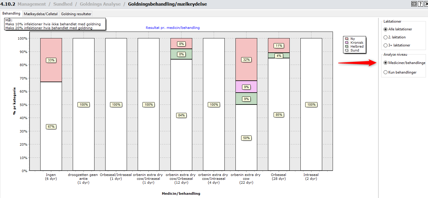 Det er muligt at se en analyse for forskellige medicin som følges, fx når du bruger mere end 1 medicin til at golde a ko. I dette tilfælde anvendes intraseal og orbeseal.