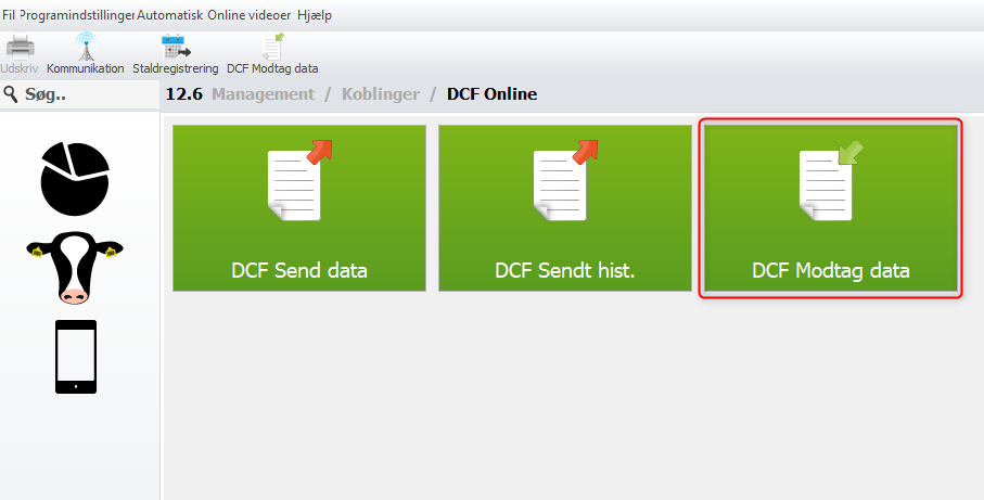 I de tilfælde skal man bruge ’DCF Modtag data’ som står i programmet under 12.6 (se understående billeder)