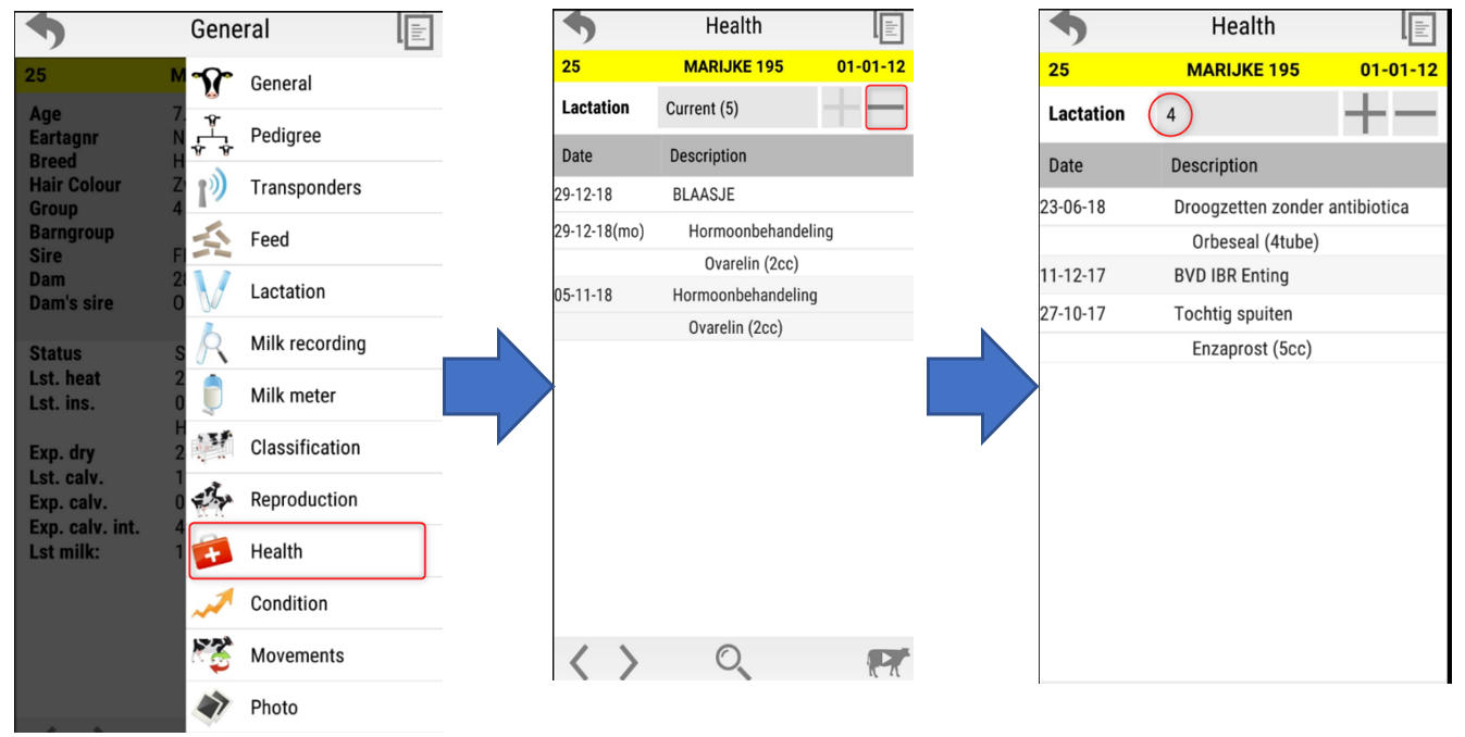 3. Ydelseskontrol resultaterne fra den nuværende laktation vil blive vist. Når du klikker på minus