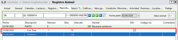 En el registro de animales se añade la fecha de servicio estimada, que se muestra en la siguiente imagen: