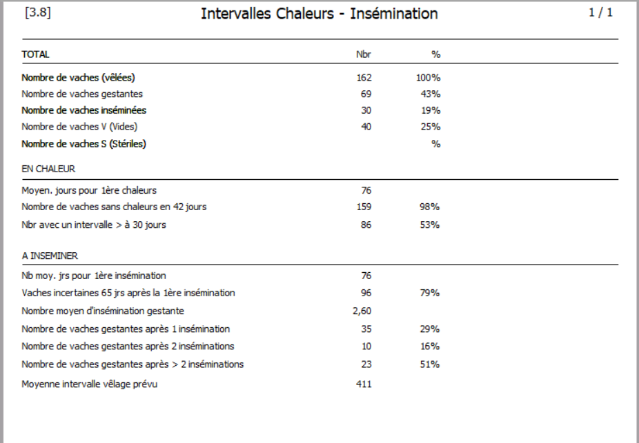 → Les intervalles sont différents dans les colonnes Int. chaleurs et Int. Inséminations