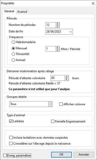 Cette analyse ressemble au menu 3.1 Analyse Fertilité mais au lieu de s’intéresser aux évènements qui se déroulent sur une certaine période, elle s’intéresse aux vaches vêlées sur cette période.