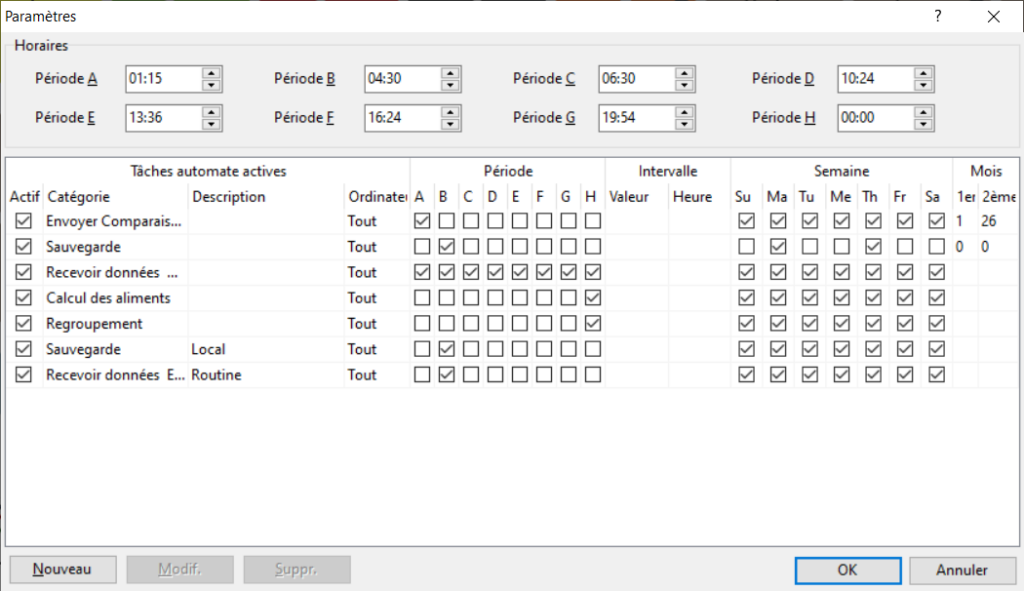 Toutes les tâches automatiques sont configurées dans le Menu Automate / Paramètres.
