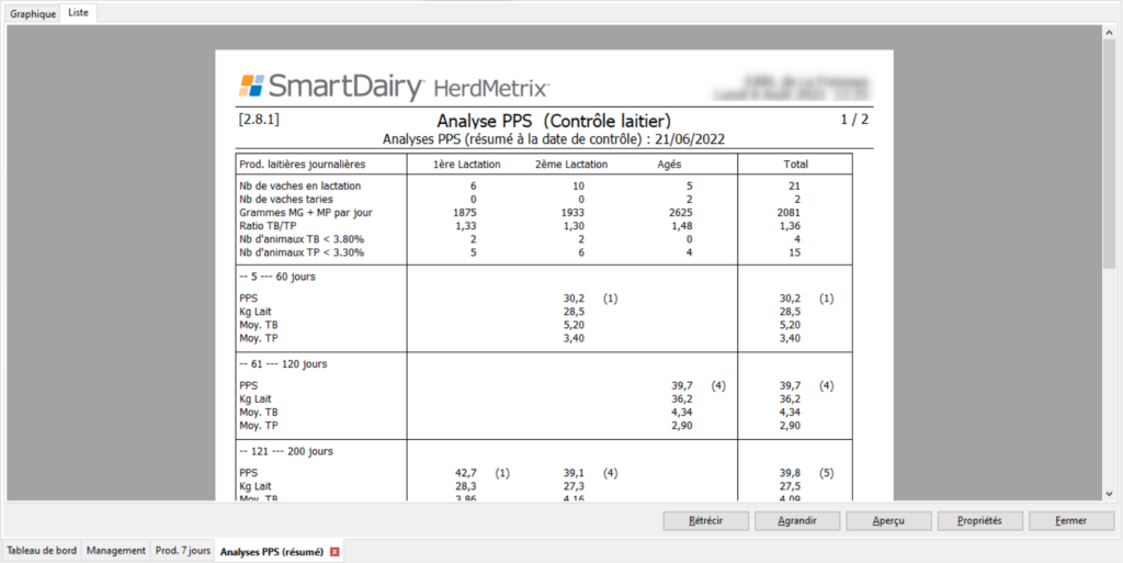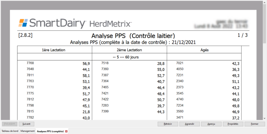 - vous pouvez afficher le PPS et/ou le poids de lait
