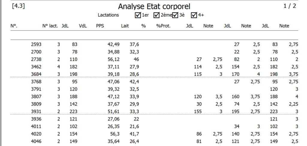 - des informations sur la production laitière à la date de la mesure de l’état de corporel
