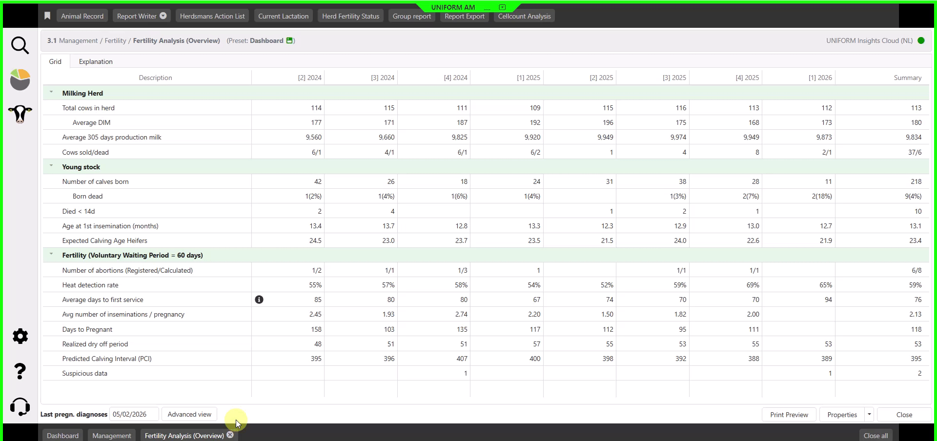 UNIFORM Consultant is a comprehensive solution for advisors in the dairy industry, allowing for simultaneous monitoring of data from multiple farms via a cloud-based system. As a fully realized herd management platform, it offers daily access to farm data, equipping you with robust analysis tools to provide exceptional advice to your clients.